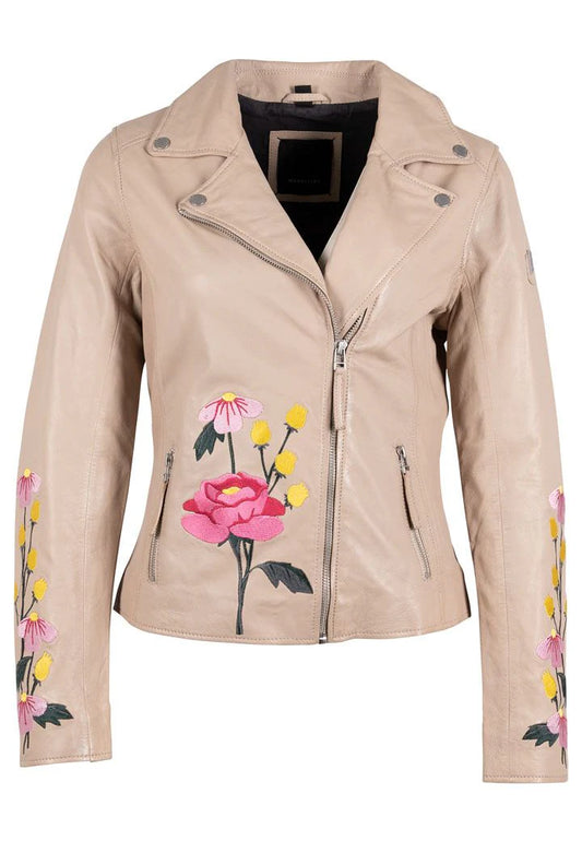 Peonie RF Leather Jacket, Light Beige - Mauritius Leather