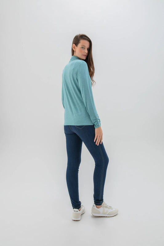Turtleneck Top w/Ruche Cuff & Button Detail 6400 MARBLE