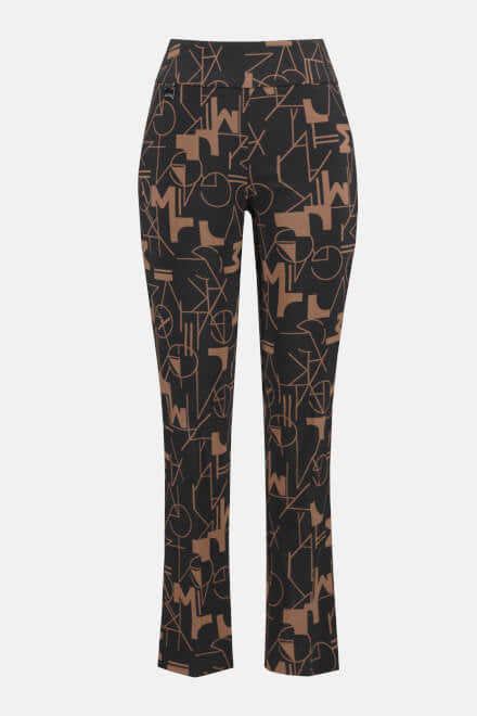 A wardrobe essential—the straight leg pants—gets elevated with an eye-catching, all-over abstract motif. This Joseph Ribkoff design is not for the faint-of-heart women: it's for risk-takers and trend-setters alike. For pulled-together perfection, try these with a solid blouse or top.