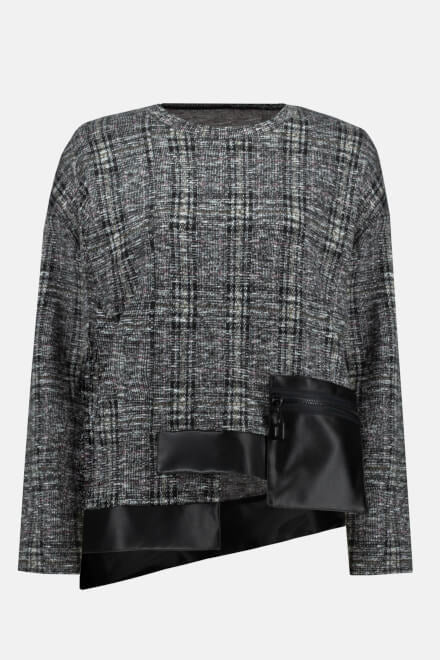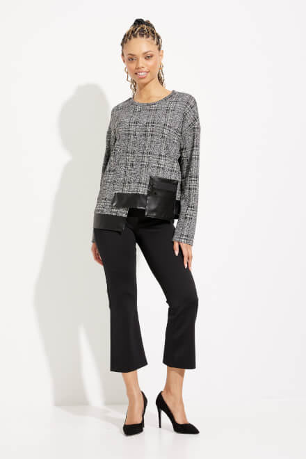 Boasting a seasonally-appropriate and luxurious checkered pattern, this Joseph Ribkoff top will breathe elegance into your fall/winter wardrobe. Faux leather accents give this an edgy, moody effect. Pair with the matching pant or break up the look by styling with a solid bottom.