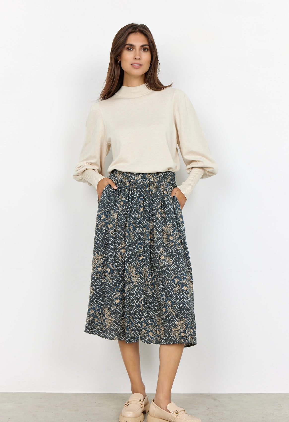Soyaconcept SC-Dollie 666. Soyaconcept sweater with long puff sleeves and a standing collar. This soft knitted Soyaconcept sweater has a loose fit with pleated shoulders.