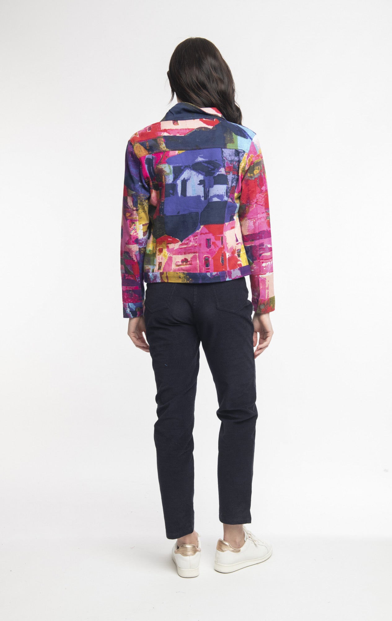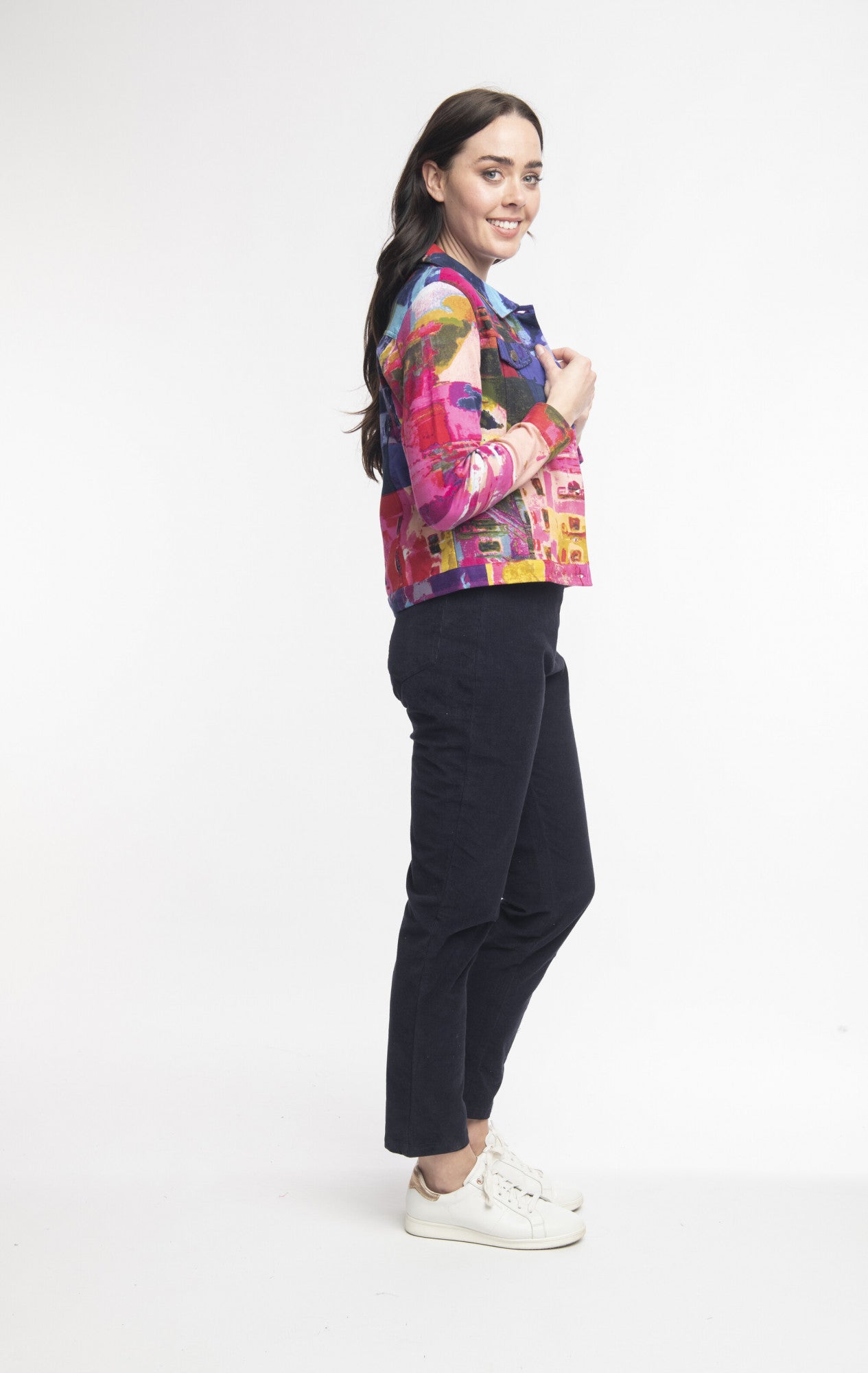Our biker jacket is the perfect way to add some fun and colour to any outfit. This button through jacket features a slight crop to create a flattering and feminine fit. Vivid prints and vibrant colours make this jacket is a bold stand-out piece.