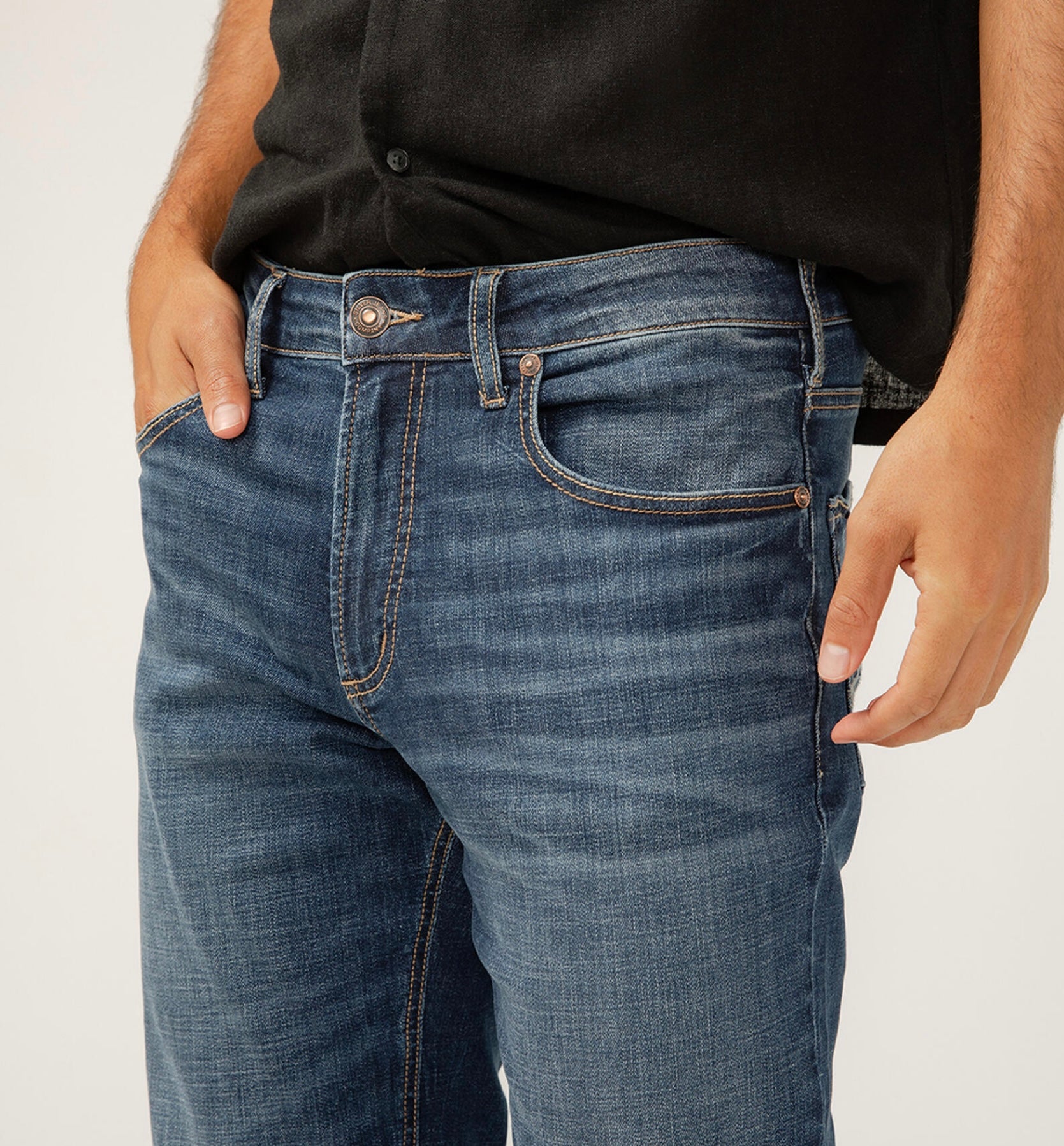 - 5-pocket styling with a zip fly and button closure
