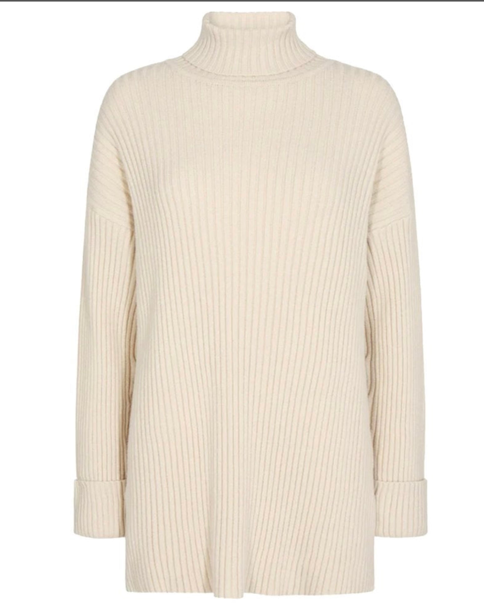SC-Blissa 32 is a nice knitted pullover in a viscose, polyester and nylon blend quality. The pullover has a loose and long fit, a turtleneck and long sleeves with a folded cuff. Style this sweatshirt with some nice jeans and sneakers
