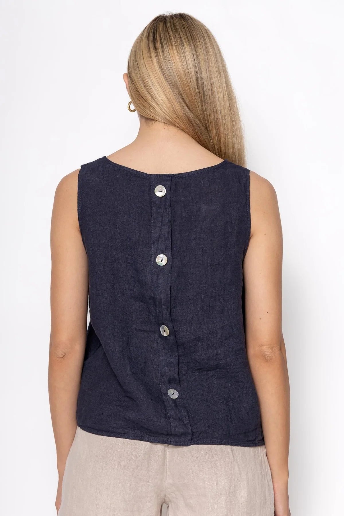 French Linen Tank Top TP1508-71 Navy - Linen Luv
