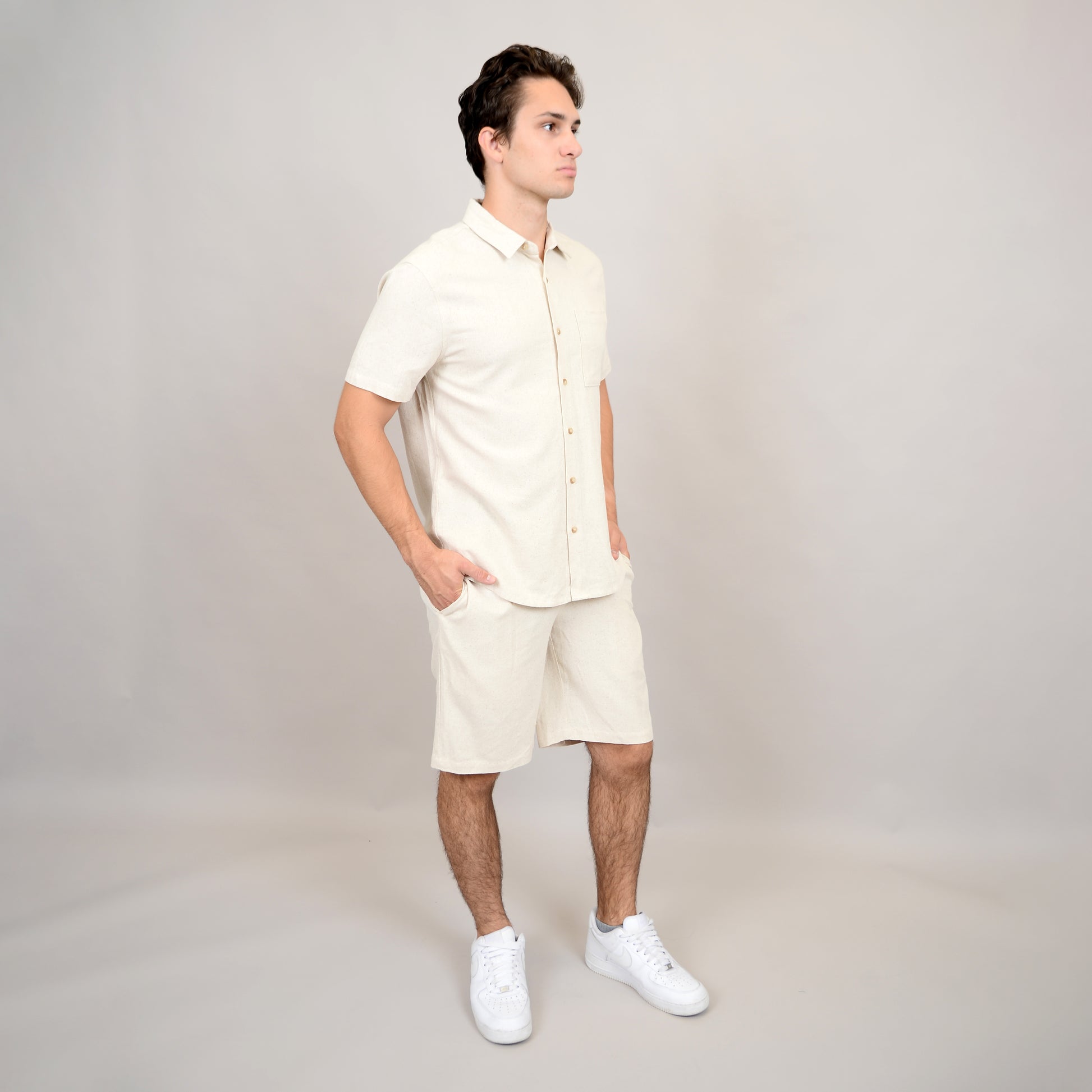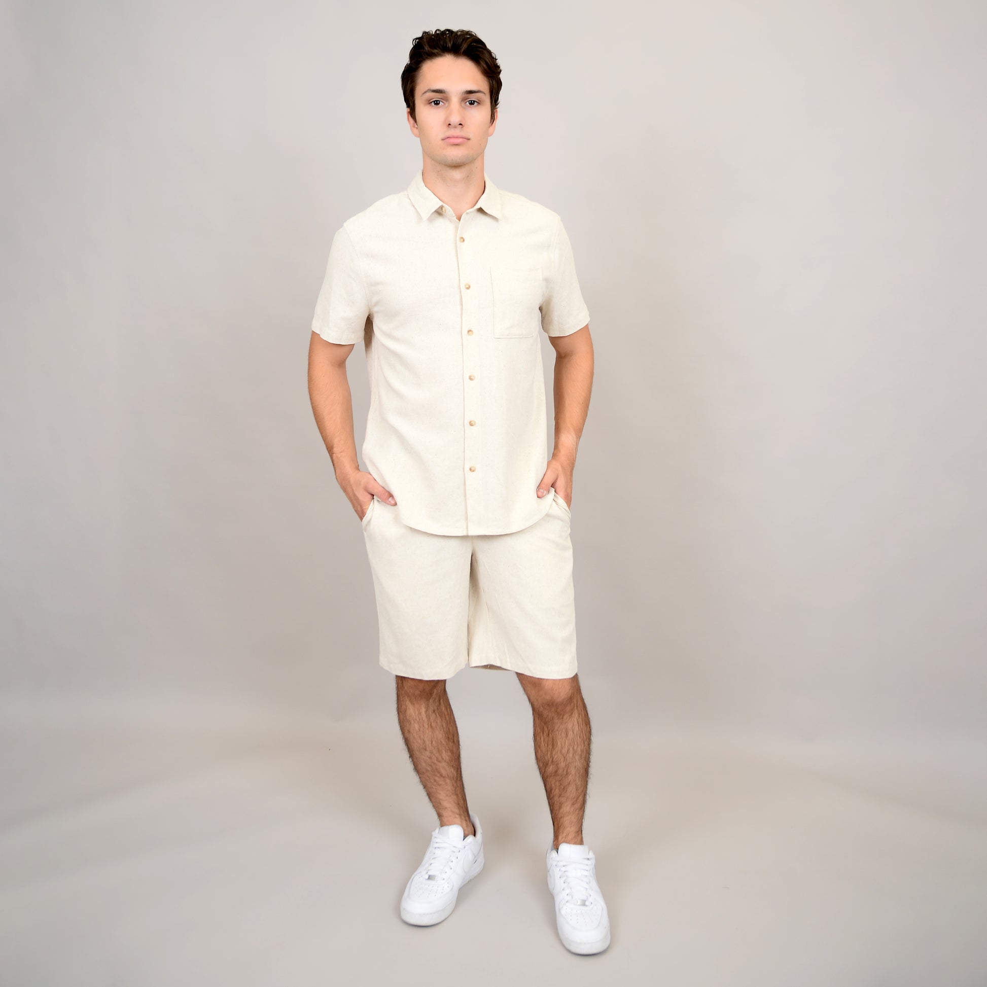 Linen Blend Short Sleeve Button Shirt 56MW104S - HEDGE