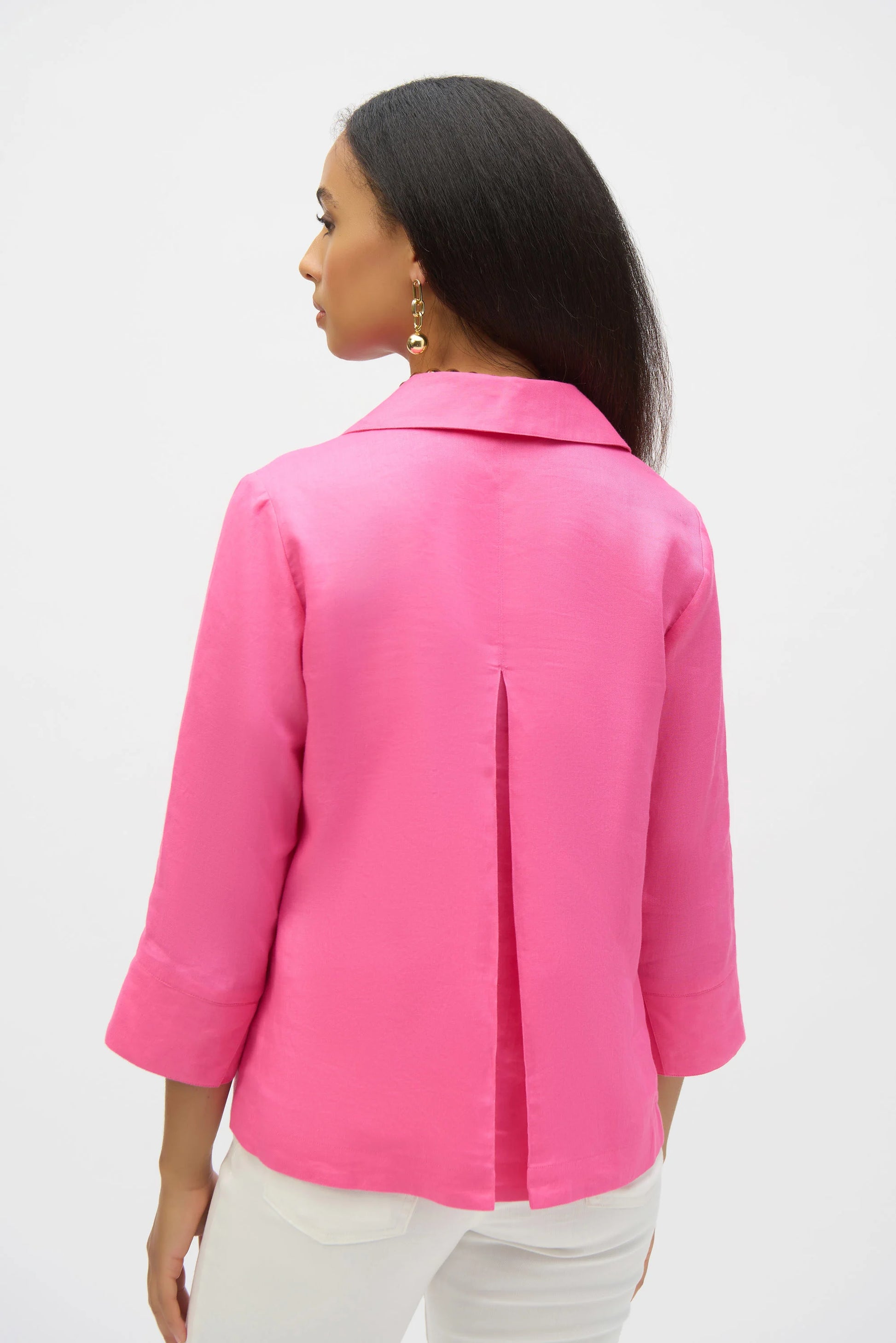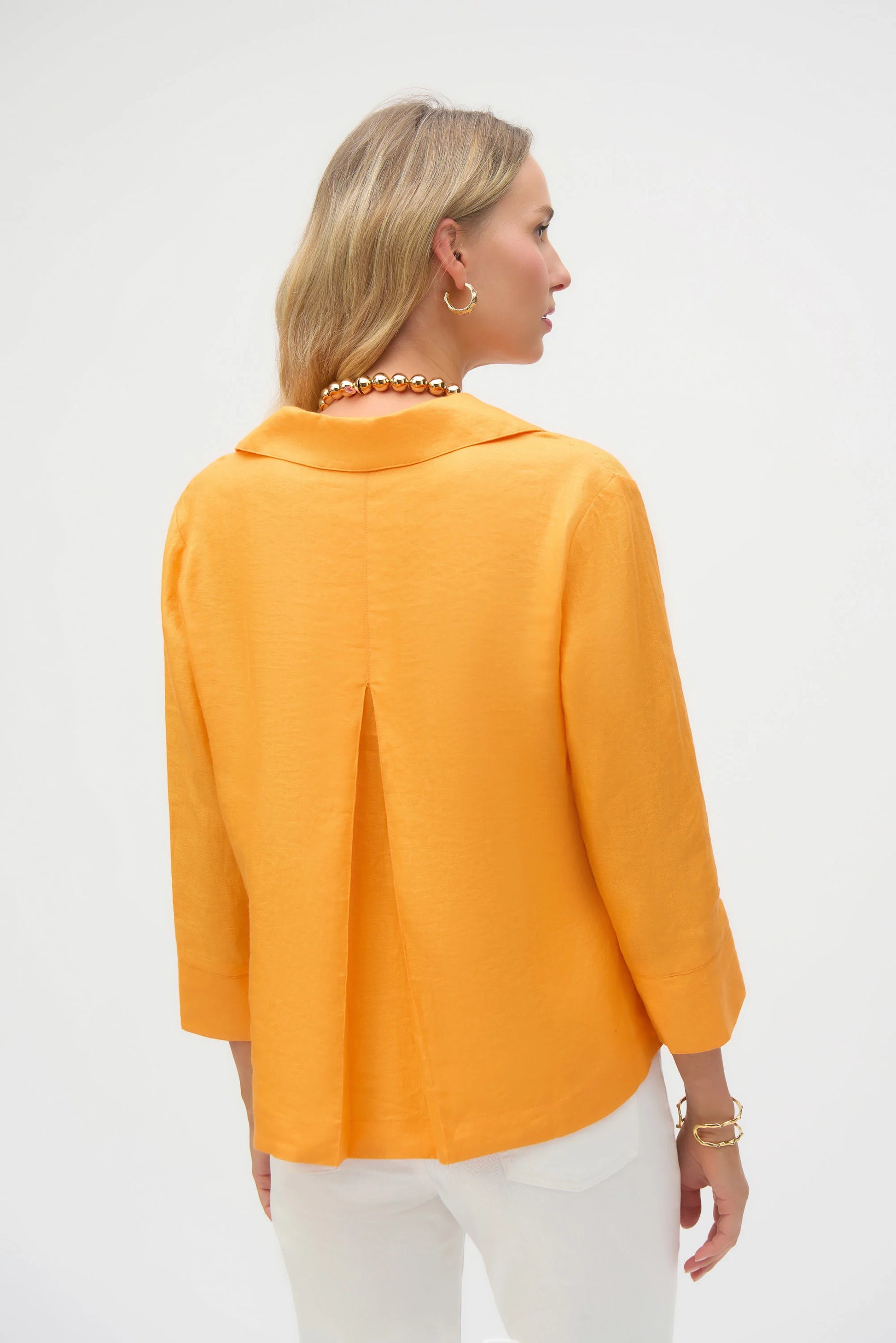 Cut from a lightweight and breathable linen fabric, this relaxed top offers comfort and style thanks to its understated details. The polo-esque shirt collar, crossover slit at the cuffs, and soft back pleat give this piece a unique look that's easy to love.
