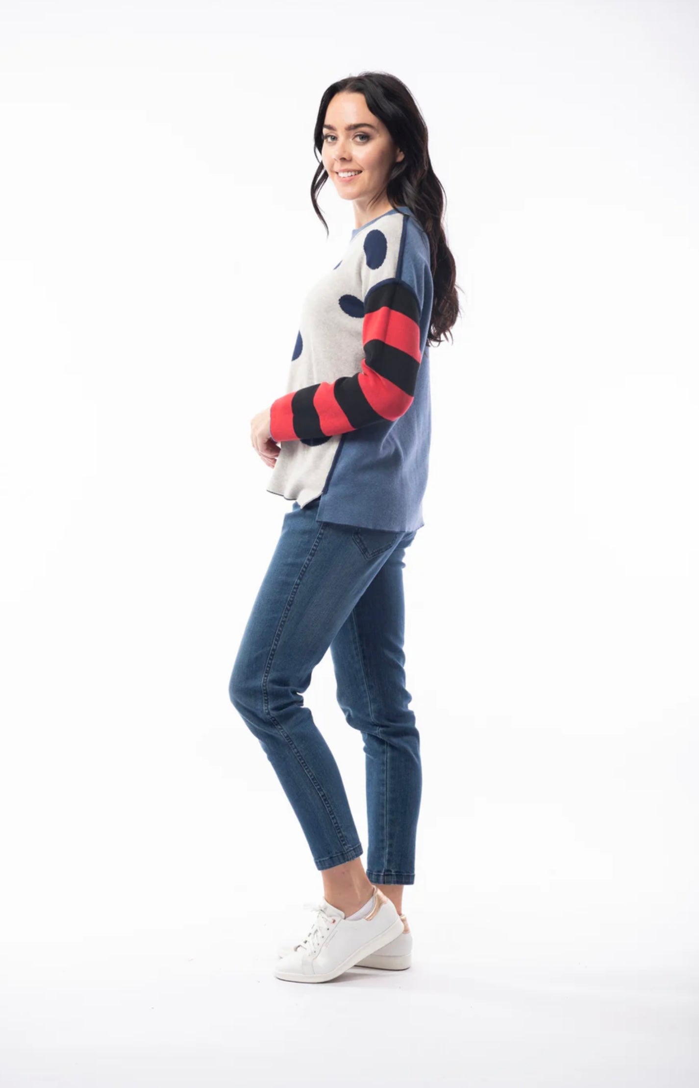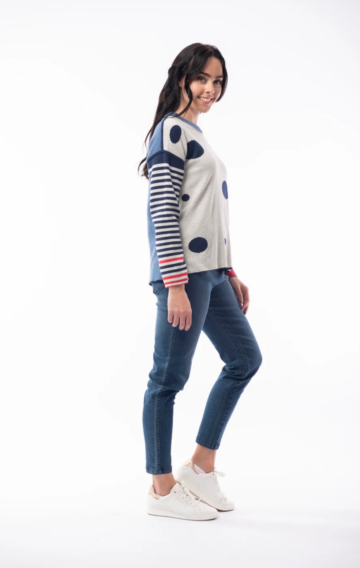 ORIENTIQUE - REVERSIBLE ROUND NECK SPOT/STRIPE JUMPER (1229)