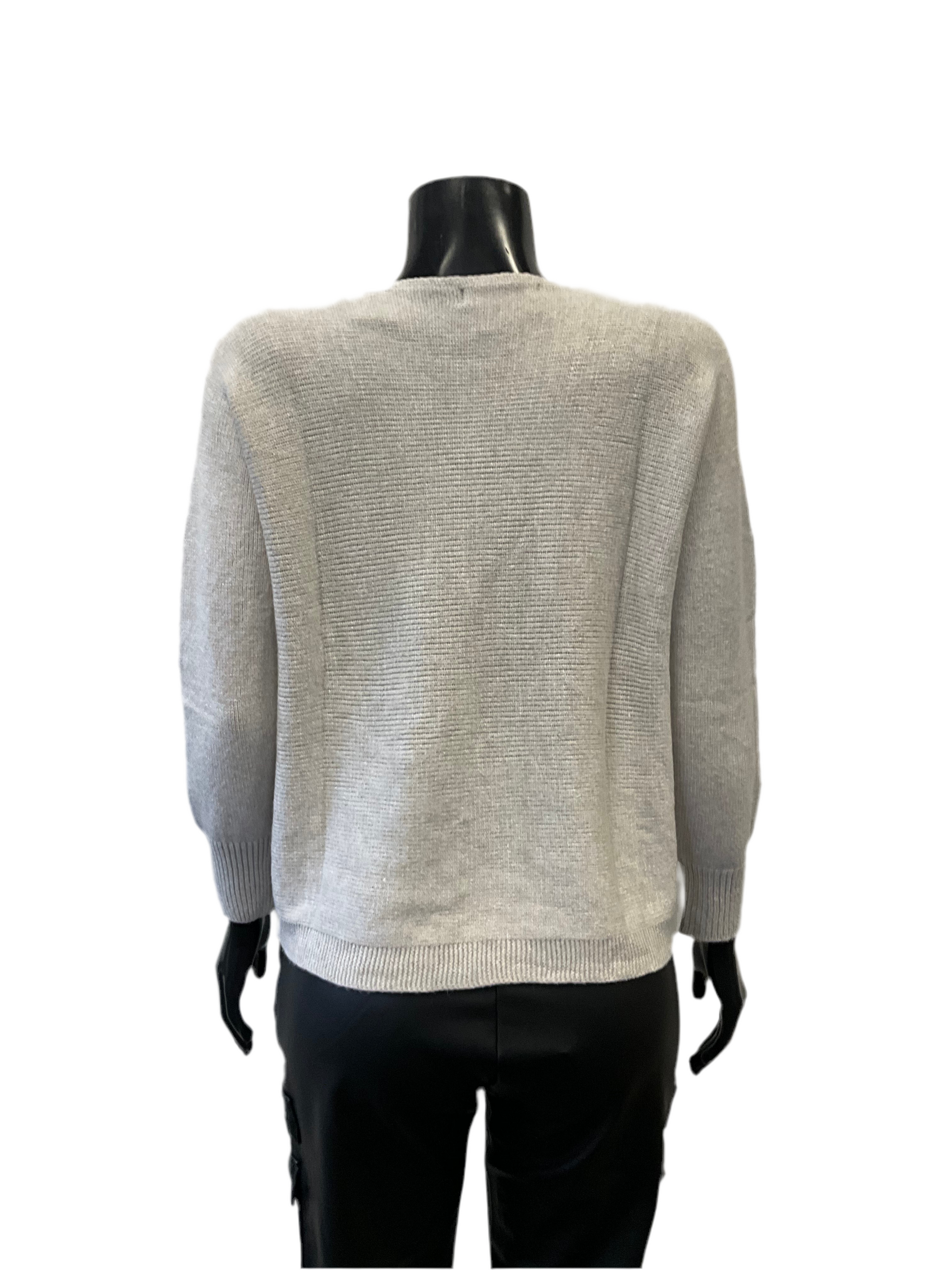 Round Neck Sweater with Heart Design Grey/Beige - Eternelle