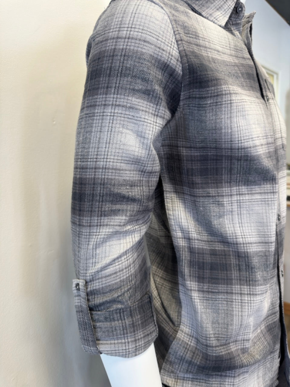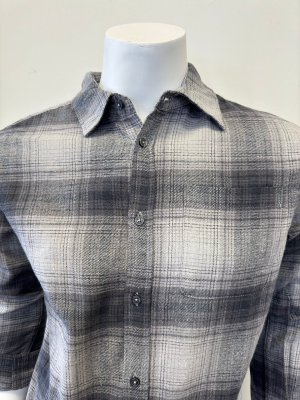 Experience style and comfort with our Grey Long Sleeve Shirt. Made from warm 100% cotton, this button shirt features a unique multi-shade grey combination. With button closures, this shirt is both practical and fashionable.