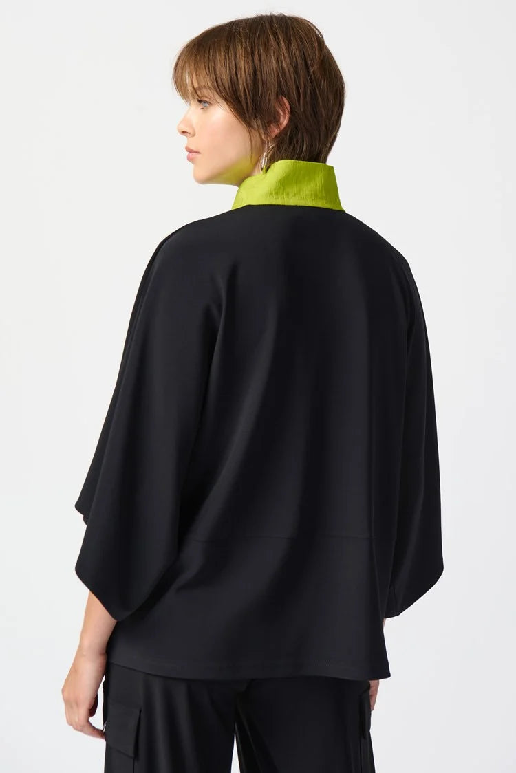 Silky Knit And Jacquard Boxy Jacket 241198 - Joseph Ribkoff - Black/Key Lime