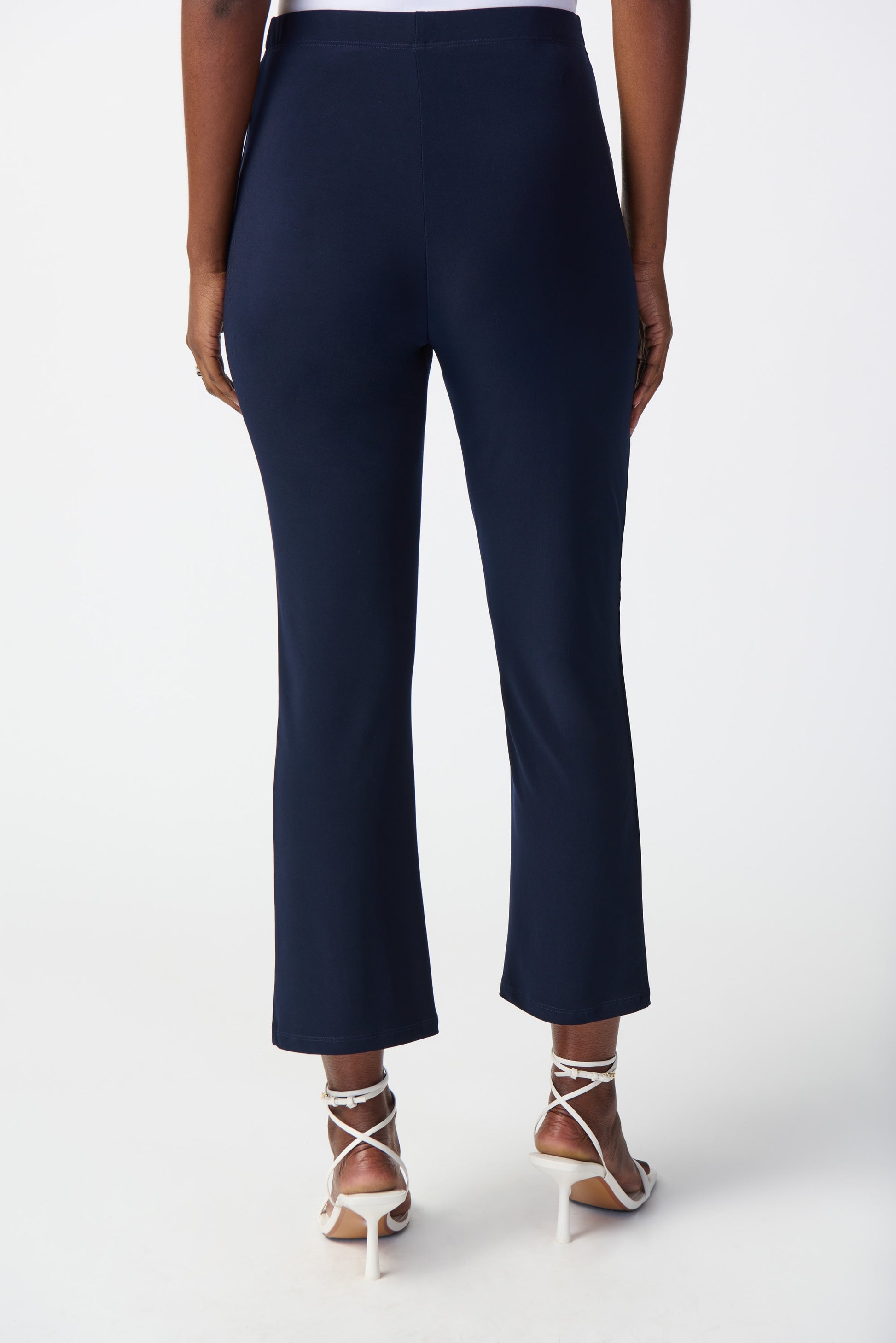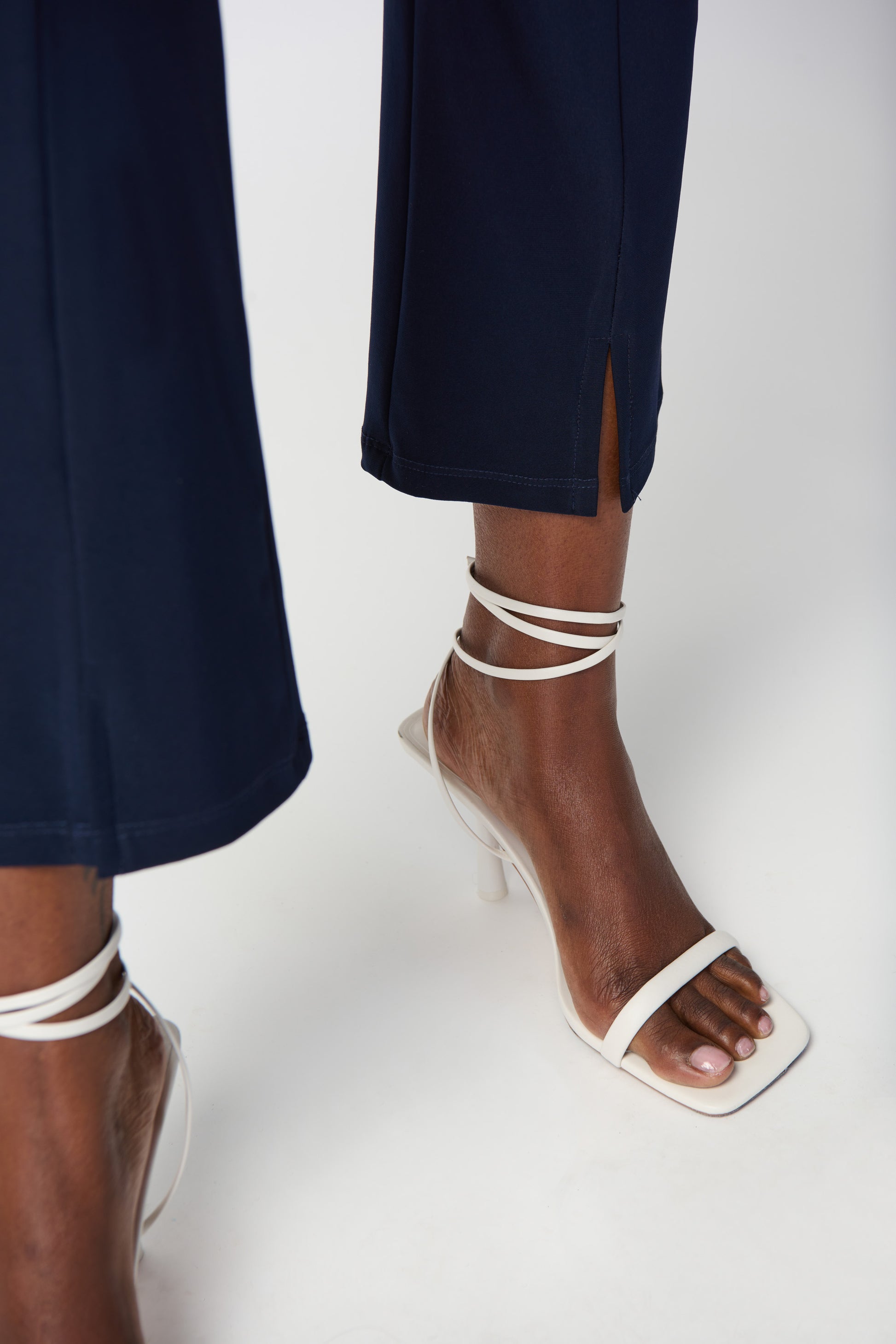 Tailored in a high-quality silky knit fabric, these office-ready straight pants feature delicate front cuts with small slits at the hem to create a refined look. A folded elastic waistband is integrated into the garment to help you carry on easily and comfortably from day to night.
