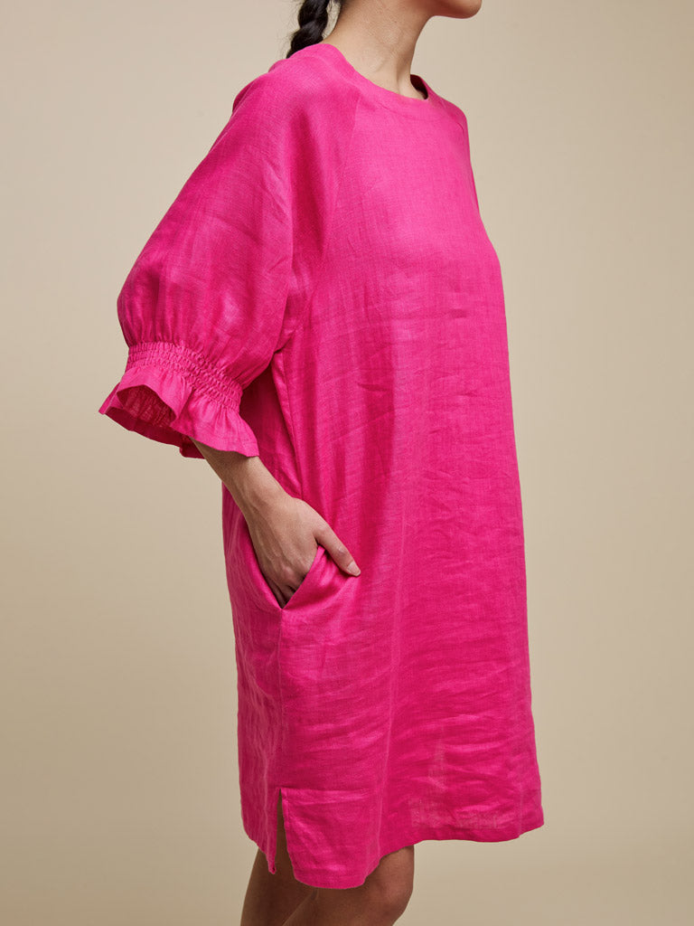 UCHUU A-LINE DRESS WITH RAGLAN SLEEVES AND ROUND NECK FUSCHIA