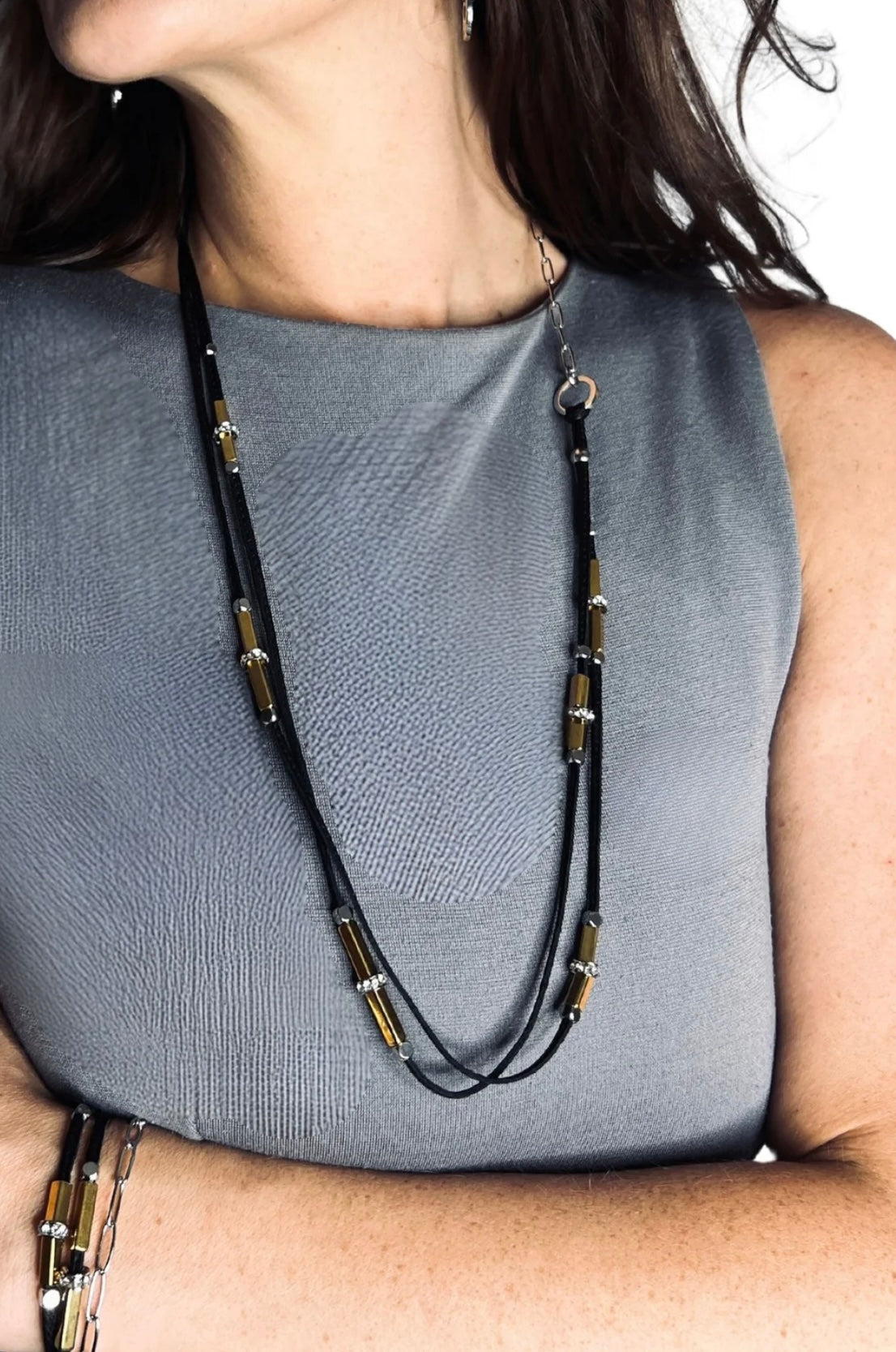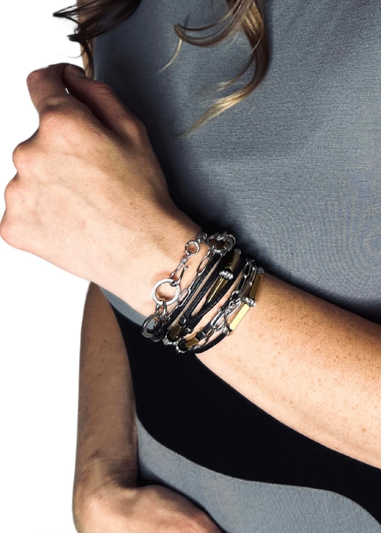 What sets the Udesign Double Shift apart is the fluidity of the leather that allows for effortless wrapping and the innovative feature that allows the beads to gracefully shift along the leather, enabling you to customize any look with ease. The result is an impressive variety of styles, each possessing an intriguing and unpredictable sophistication.